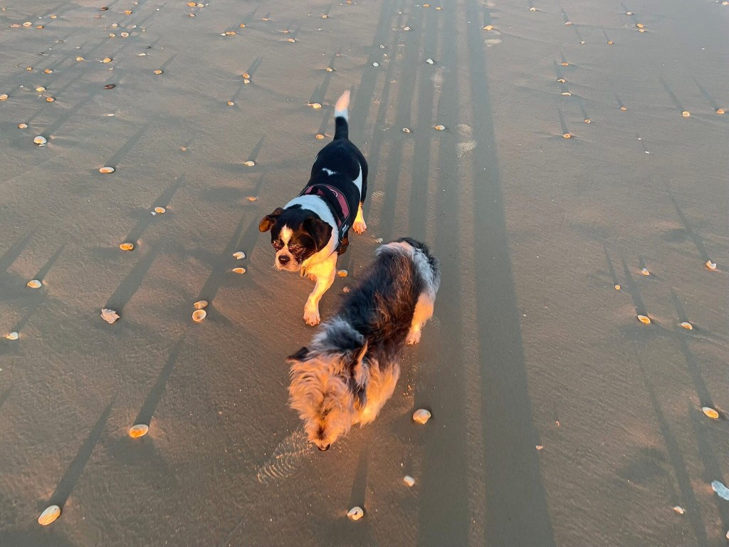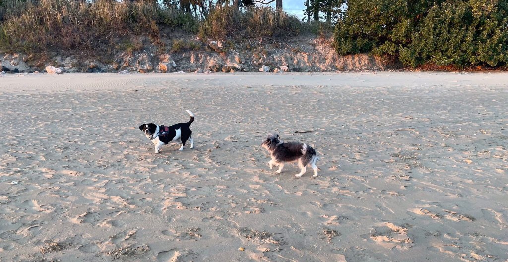 The reddish tinge is the sunrise They love the beach (but I was still in bed)