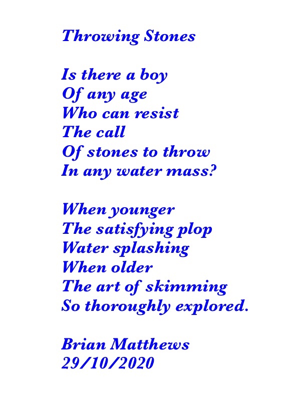 My four year old grandson is obsessed with collecting stones/rocks and throwing them into water. Ingalalla Falls near Normanville, South Australia, is a favourite but this poem was prompted after a similar experience dropping rocks from the end of the, as I understand it, second shortest jetty in Australia at Normanville Beach