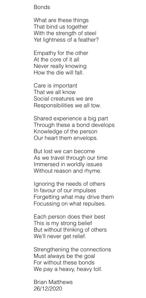 A poem prompted by Christmas get togethers and thinking about how bonds develop
